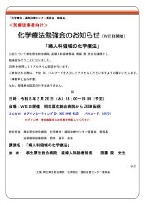 - 化学療法勉強会「婦人科領域の化学療法」開催のお知らせ